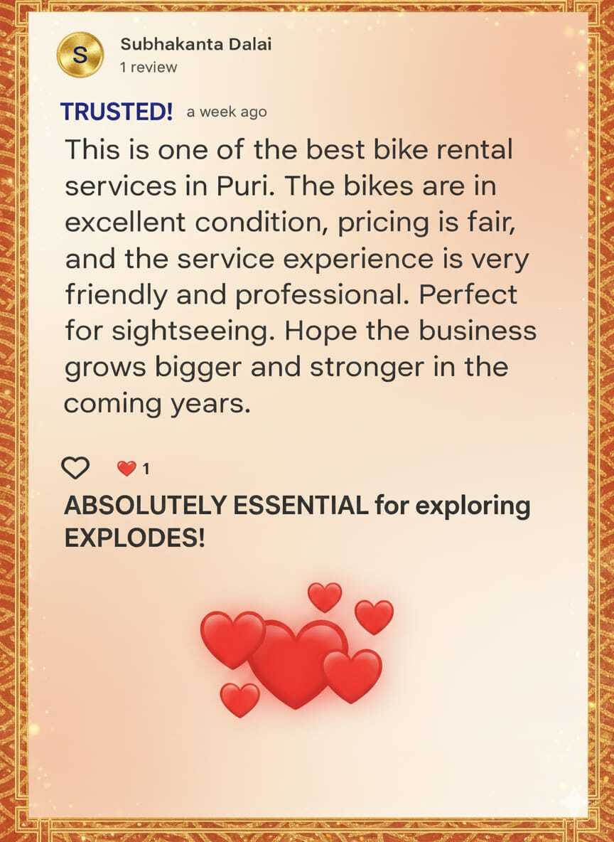 We provide reliable and affordable bike rental services for your ultimate Puri road trip experience.